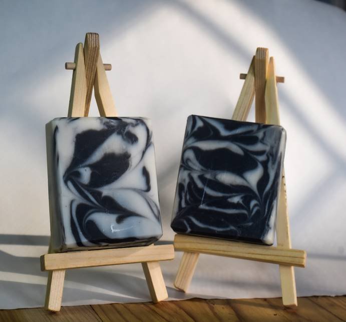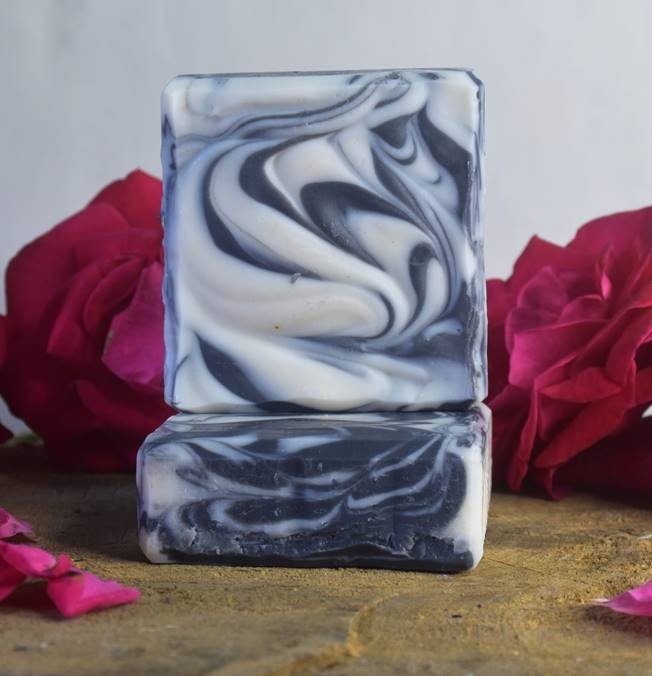 A visual treat and skin-loving powerhouse, this handcrafted soap features a mesmerizing black and white feather swirl—achieved using activated charcoal and kaolin clay. The pattern is not just art; it reflects the harmony between deep detoxification and gentle nourishment.