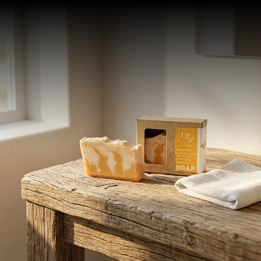 The cold process formulation combined with turmeric gently draws out impurities and excess oil, unclogging pores for clearer skin.